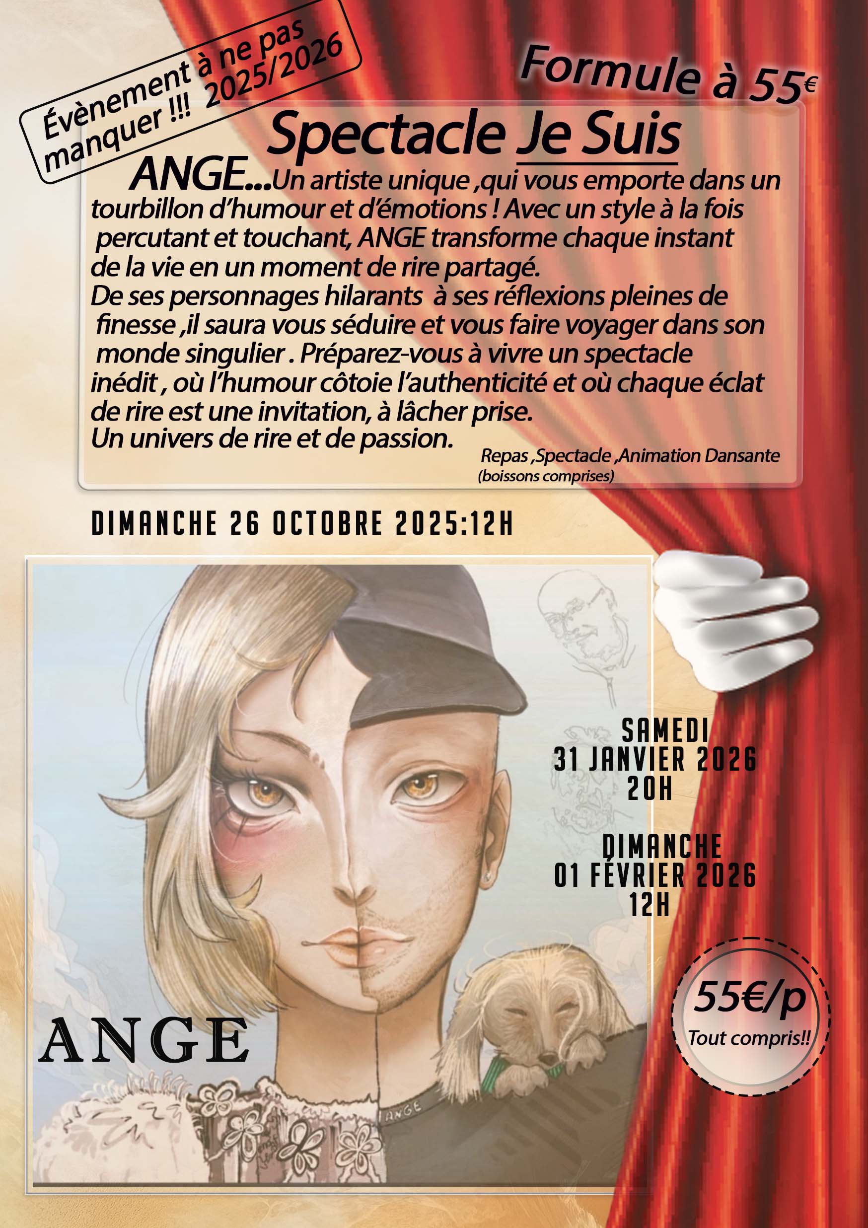 Vivez un après-midi d’émotion avec un spectacle de grande qualité et inédit : des animations pendant le repas (danse avec DJ), puis un spectacle de plus 1h avec artistes professionnels qui se produisent sur scène, dans un cadre somptueux et chaleureux.